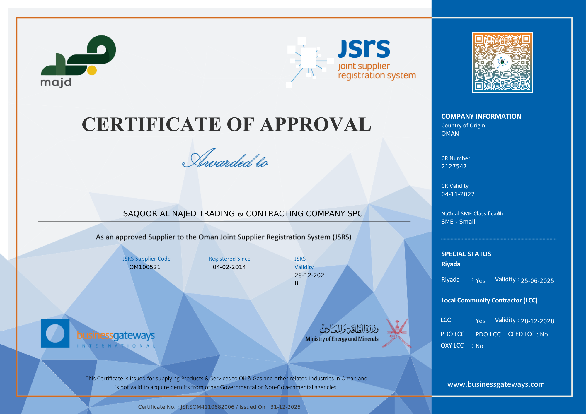 Our certificates demonstrate our commitment to quality, compliance, and excellence in the Oil & Gas industry. We maintain all necessary licenses and certifications to serve our clients with the highest standards.