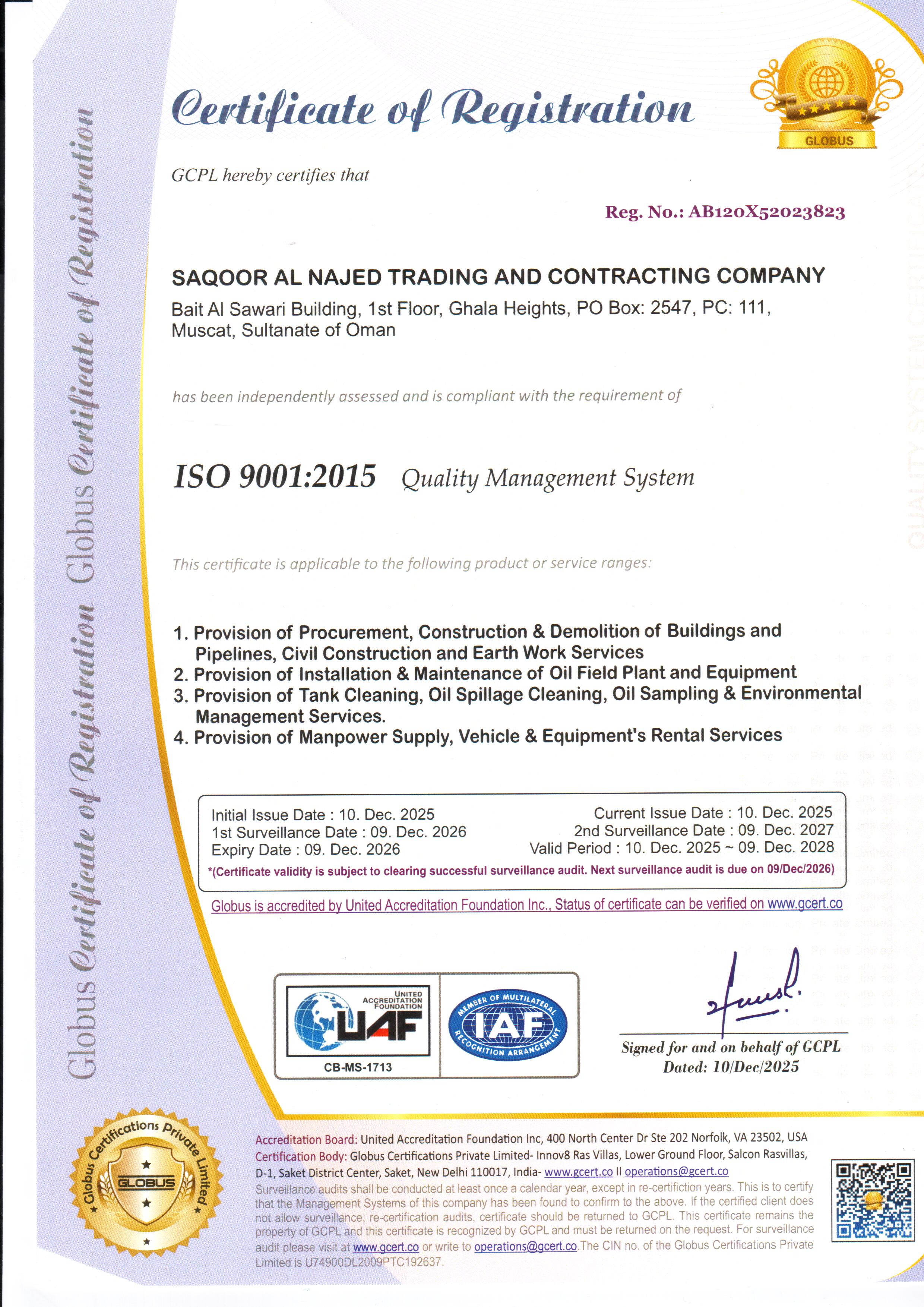 Our certificates demonstrate our commitment to quality, compliance, and excellence in the Oil & Gas industry. We maintain all necessary licenses and certifications to serve our clients with the highest standards.